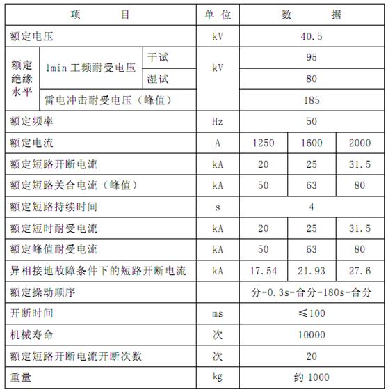 斷路器的主要技術(shù)參數(shù)見表 1。
